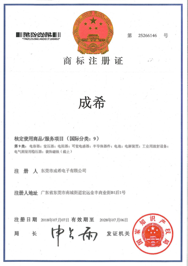 東莞市成希電子有限公司成立于2013年,子公司廣東成希電子科技有限公司在廣東河源有35畝生產基地,一期廠房面積10000平,二期報建25000平。專業的電子元器件方案解決供應商,專業從事電容器研發、生產、銷售于一體的科技型企業,產品可滿足市場超小型化、低噪音、高精度、高品質需求,也為客戶提供穩定可靠的產品和訂制化服務。產品系列涵蓋了X2安規電容、金屬化CBB薄膜電容、插件Y安規電容、貼片Y安規電容、壓敏電阻、熱敏電阻電子元件。產品廣泛應用于智慧照明、小家電、新能源汽車,可再生能源、工業電源、適配器、手機快充及移動電源等。針對氮化鎵快充類. 推出了完整的小型化專用電容系列,助力氮化鎵快充產品開發中的電容選型. 針對新能源儲能類.推出了壽命長、低損耗、耐大電流、耐高溫高濕的系列電容。